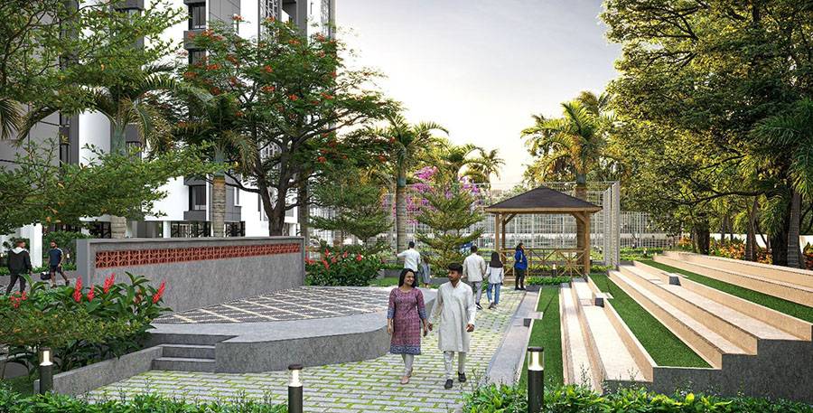 The construction quality and specifications are of high standards. The buildings are constructed using earthquake-resistant RCC frames compliant with Seismic Zone II standards. The flooring consists of premium digital tiles in all living spaces, while toilets feature granite flooring. Doors are made from quality Mahogany or Red Meranti wood with smart lock systems, and windows are 3-track uPVC sliders with integrated mosquito mesh. Sanitary fittings and geysers are from reputed brands such as Jaquar and Havells. The electrical system includes concealed copper wiring, modular switches, and a 100% power backup facility for common areas and partial backup for apartments.
